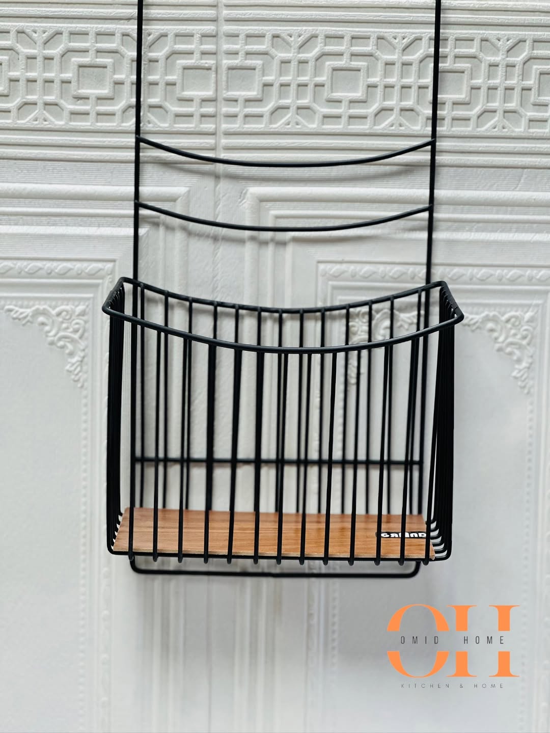یه نظمدهنده شیک و کاربردی برای کابینت زیر سینک با طراحی مدرن و کفه چوبی زیبا، مناسب برای نگهداری انواع مواد شوینده. نصب آسان روی درب کابینت، طراحی مقاوم با بدنه فلزی مشکی مات و کف چوبی باکیفیت و ضد رطوبت.