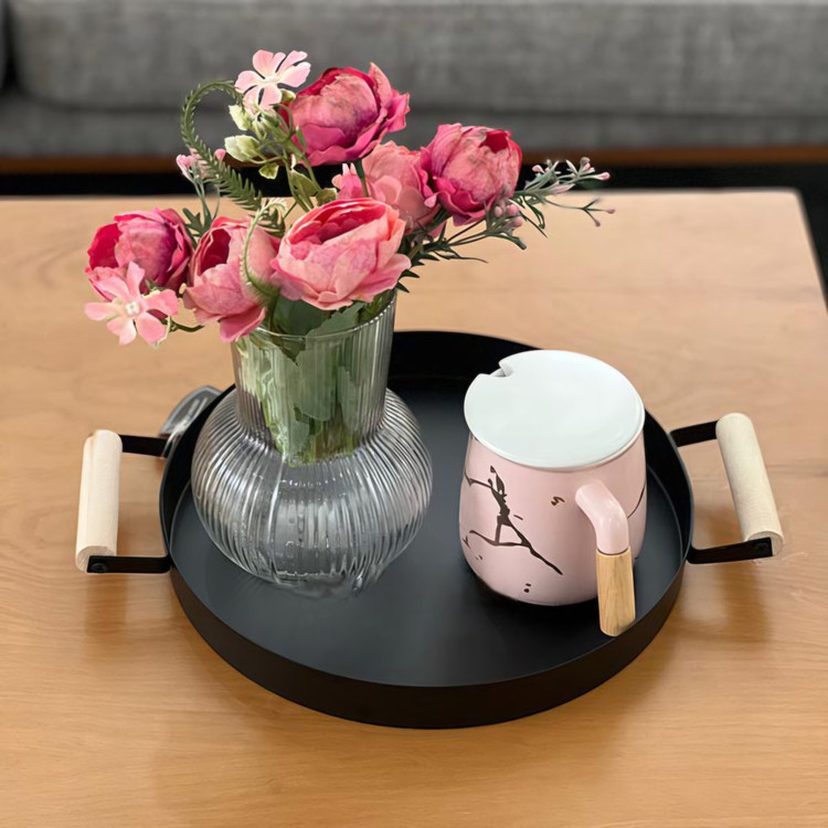 سینی فلزی دسته چوبی هلگا، از جنس فلز با دسته های چوبی است. این محصول مناسب سرو تنقلات، سینی مزه و… می باشد.