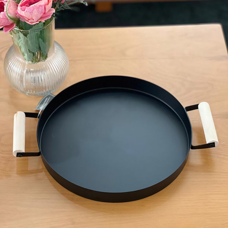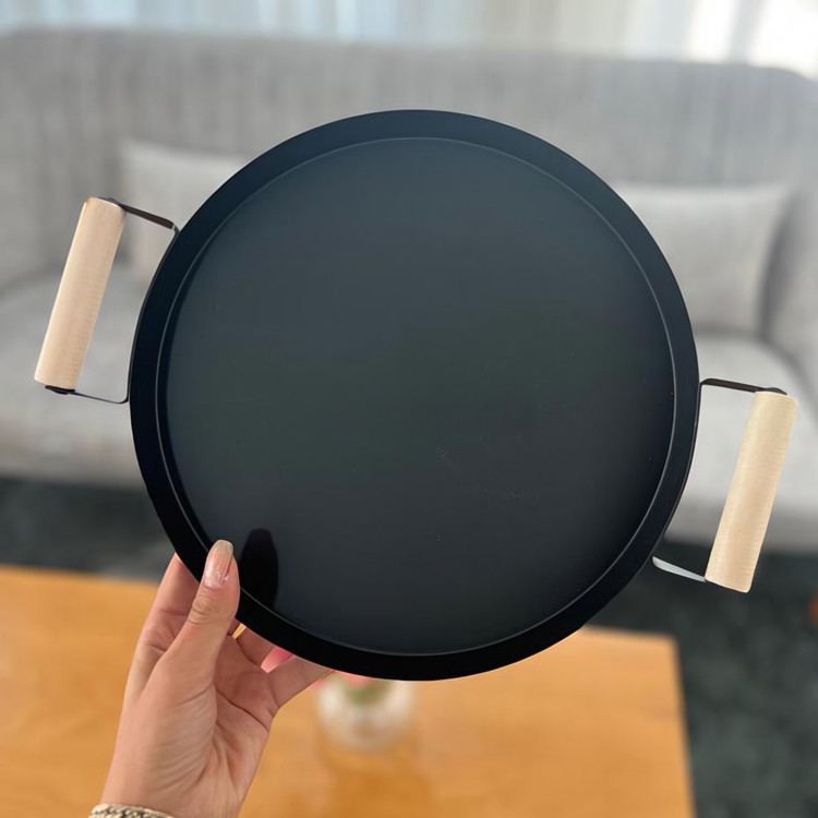 سینی فلزی دسته چوبی هلگا، از جنس فلز با دسته های چوبی است. این محصول مناسب سرو تنقلات، سینی مزه و… می باشد.