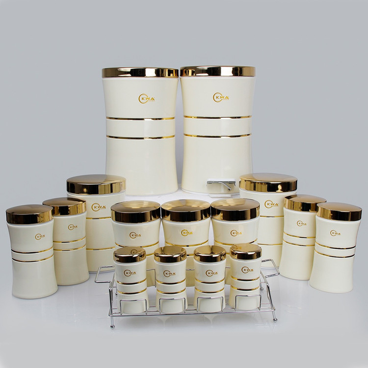 سرویس آشپزخانه ۱۶پارچه کرم درب طلایی