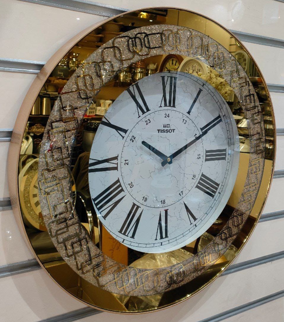 ساعت دیواری تیسوت آینه ای گرد طلایی