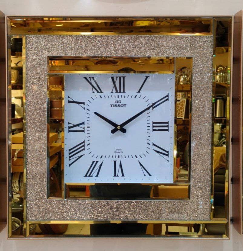 ساعت دیواری تیسوت آینه ای چهارگوش طلایی