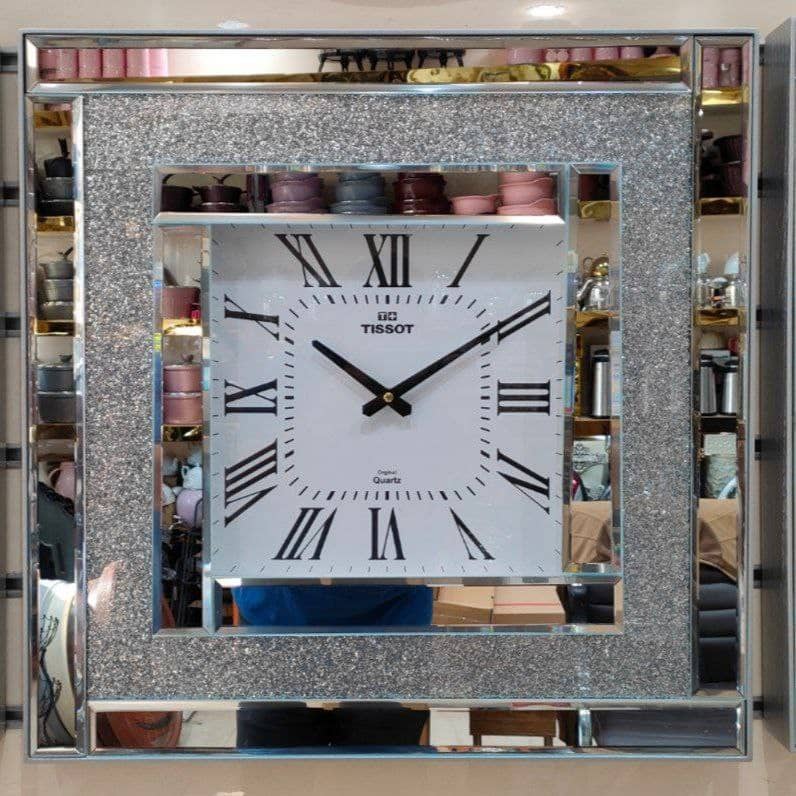 ساعت دیواری تیسوت آینه ای چهارگوش نقره ای کروم