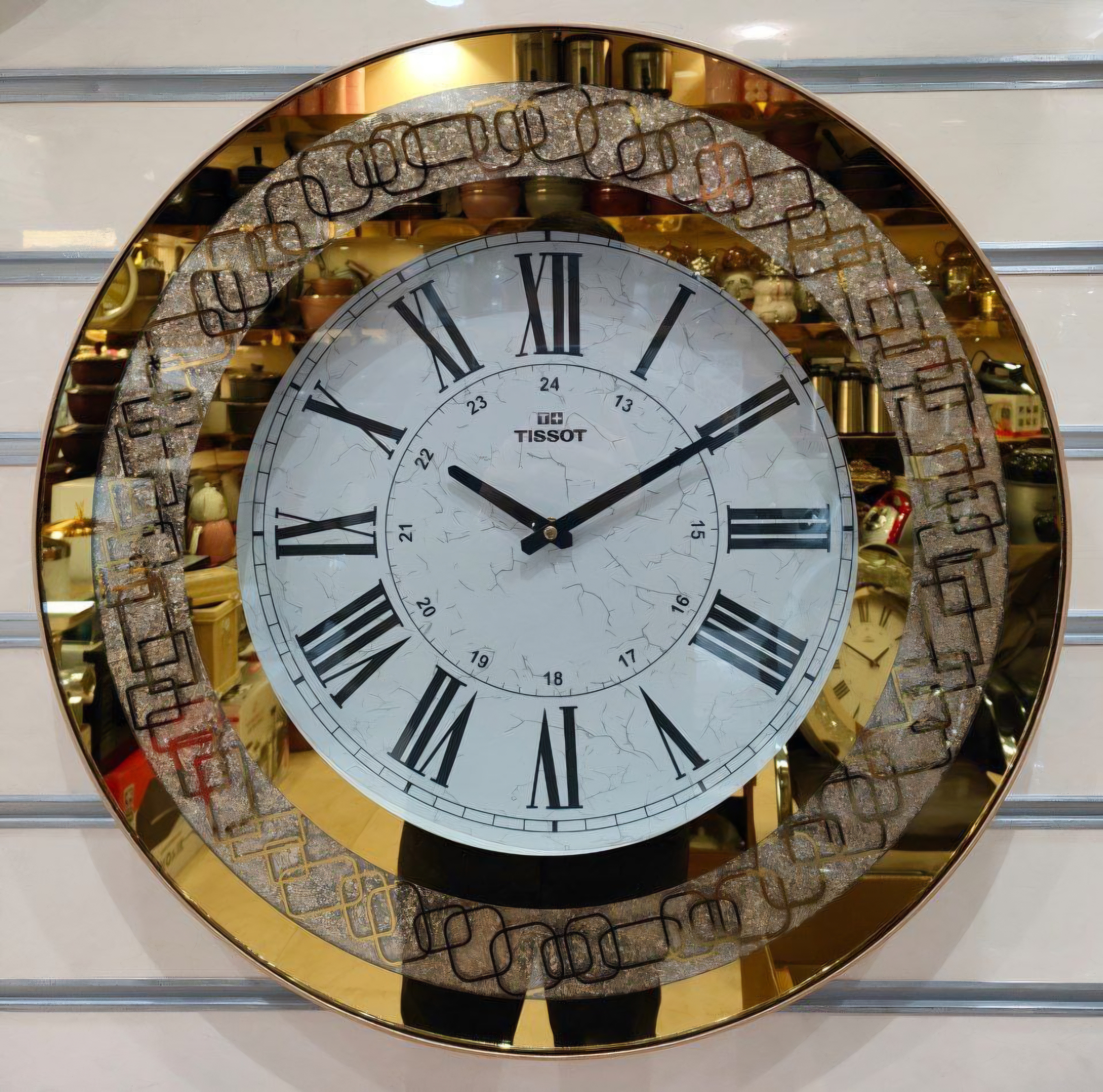 ساعت دیواری تیسوت آینه ای گرد طلایی